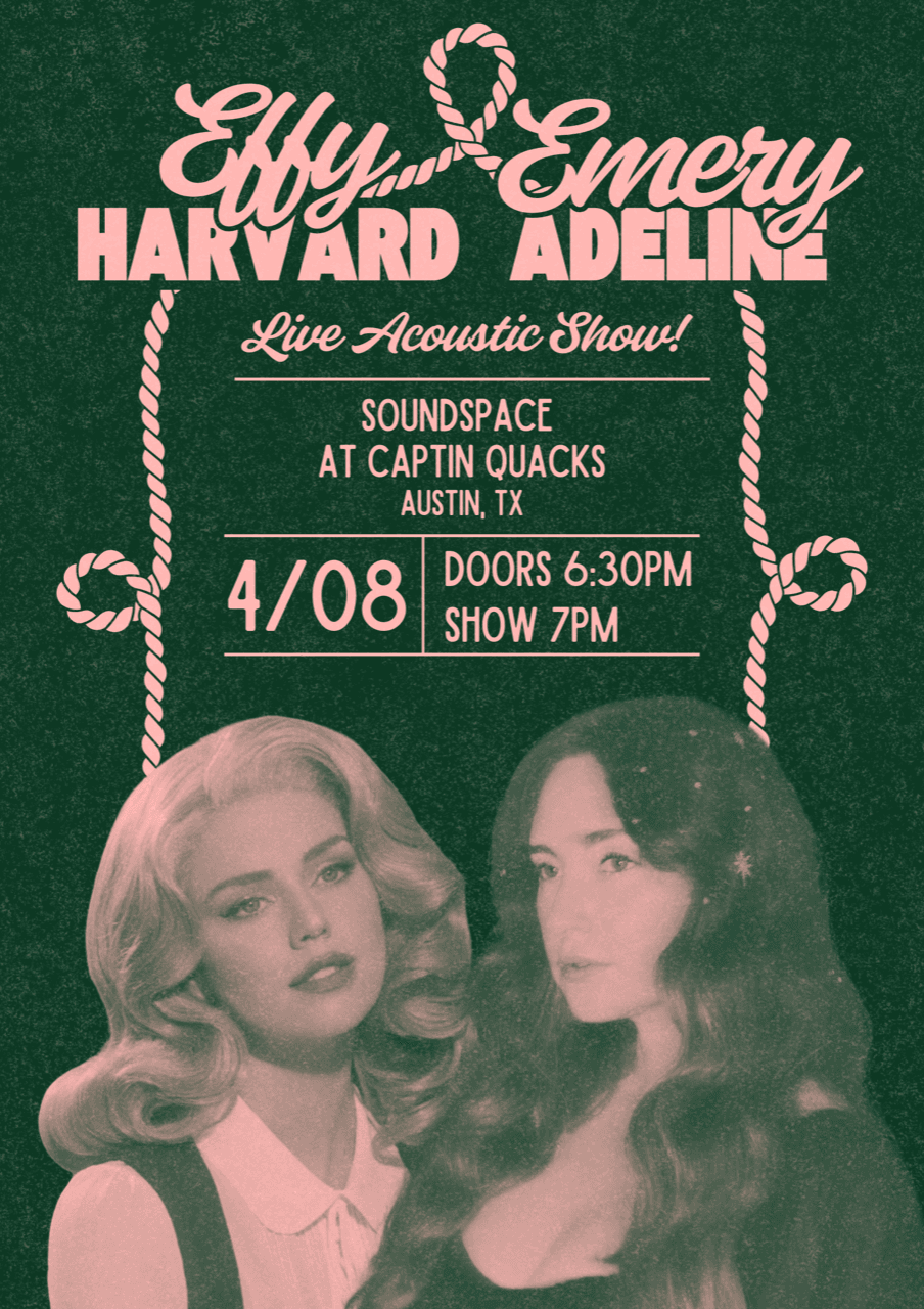 Enjoy an evening of sweet country music from your favorite Austin songbirds, Effy Harvard and Emery Adeline!