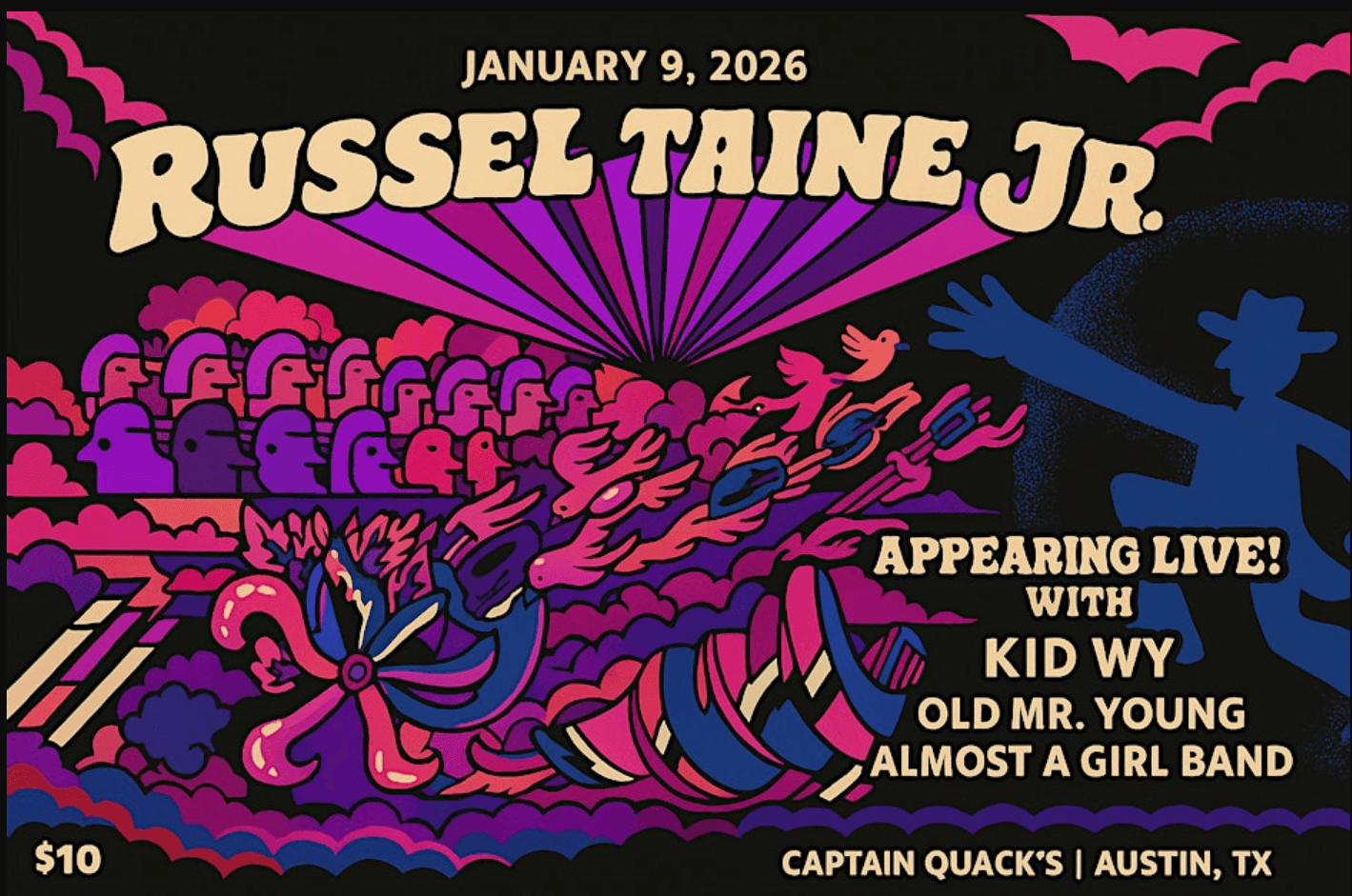 ![]() Russel Taine Jr. – “Ghosts” EP Release Show with special guests Kid Wy + Old Mr Young Austin’s own Russel Taine Jr. is celebrating the release of his newest EP Ghosts, a 5-song, 18-minute set of indie-rock fueled tunes recorded live at Austin's own Test Tube Audio studios. Imagine late-night drives, replaying conversations in your […] |