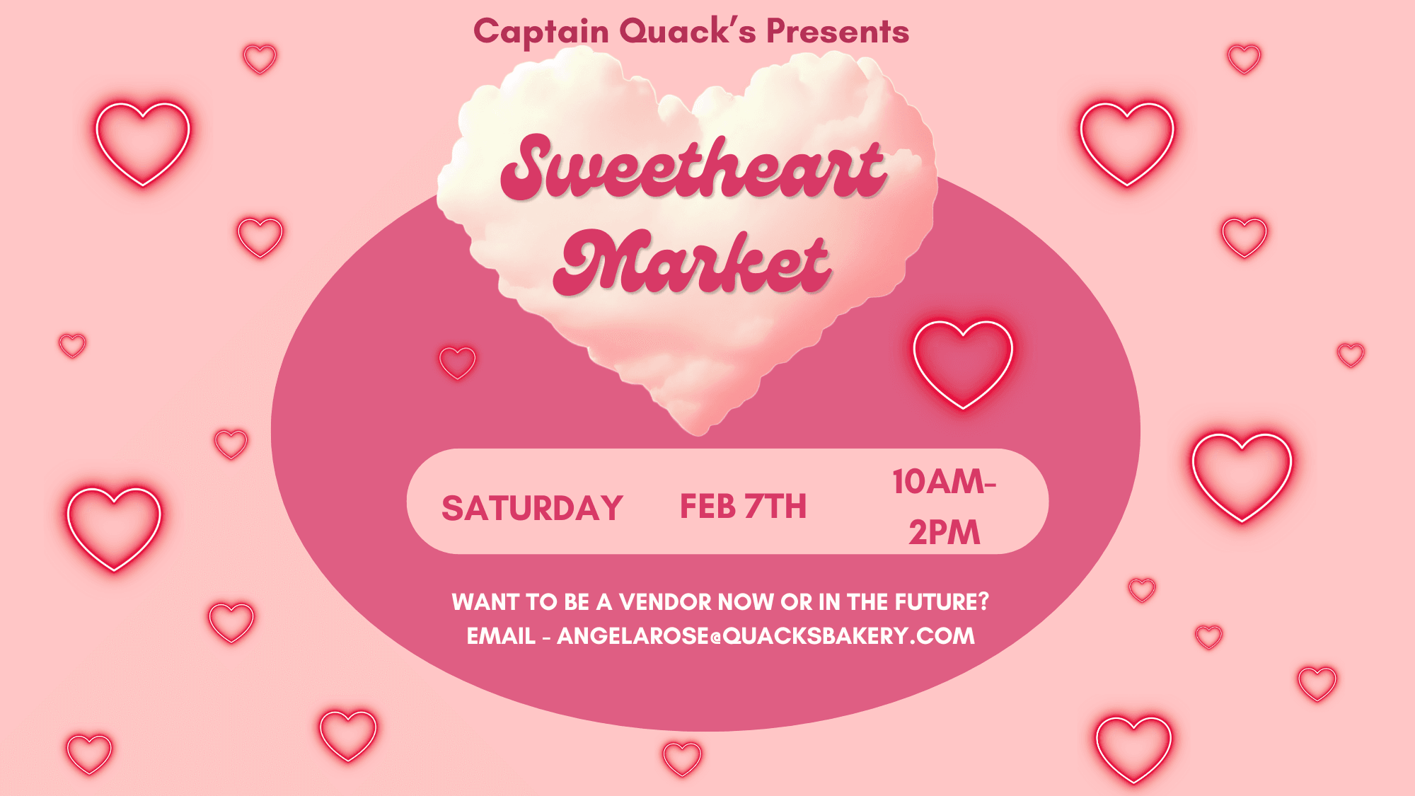 ![]() Morning Sweetheart Market at Captain Quackenbush's Coffeehouse! Morning Sweetheart Market The Sweetheart Market is an event where talented artisans and crafters come together to showcase their unique creations.There is something for everyone to fall in love. Whether you're looking for the perfect Valentine's Day gift or simply want to support local artists, our Sweetheart Market […]