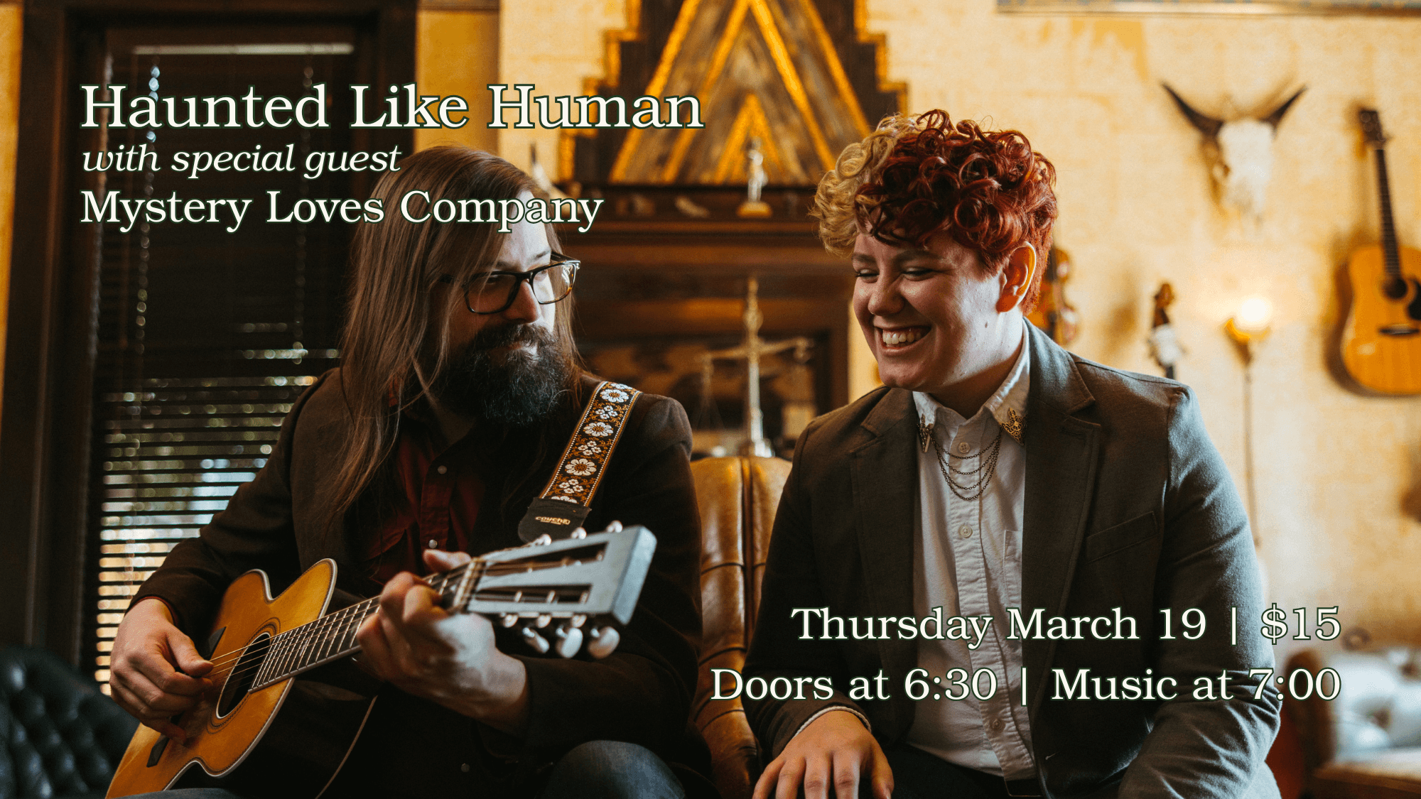 ![]() Join us for an evening with Haunted Like Human and Mystery Loves Company Nashville duo Haunted Like Human delves into inspired songwriting, sparse arrangements, and frisson-inducing harmonies that mark their music. With a background in poetry and prose, Dale Chapman's granular focus on language is simpatico with Cody Clark’s background in classical guitar, where each […]