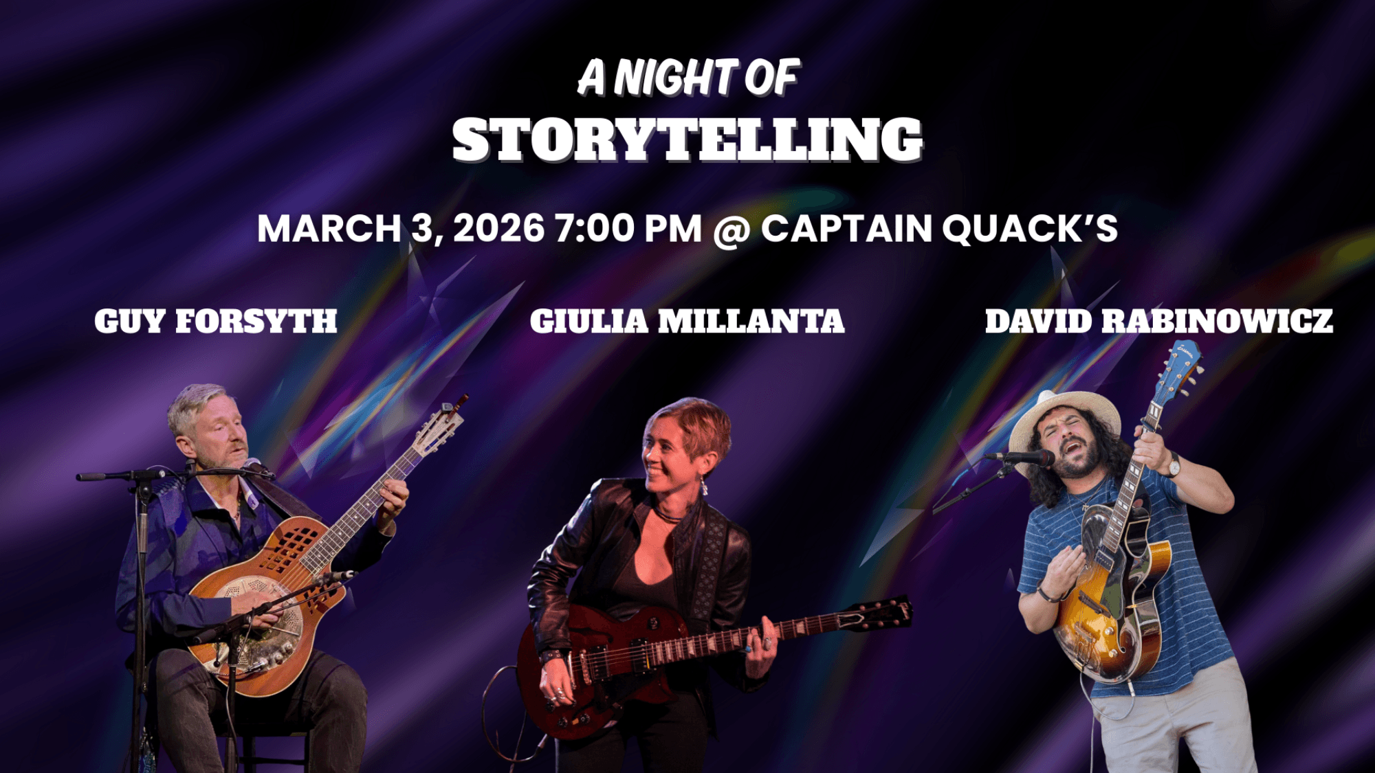![]() Giulia Millanta, Guy Forsyth, David Rabinowicz doors at 7 show at 7:30 $18 pre-sale $20 at the door